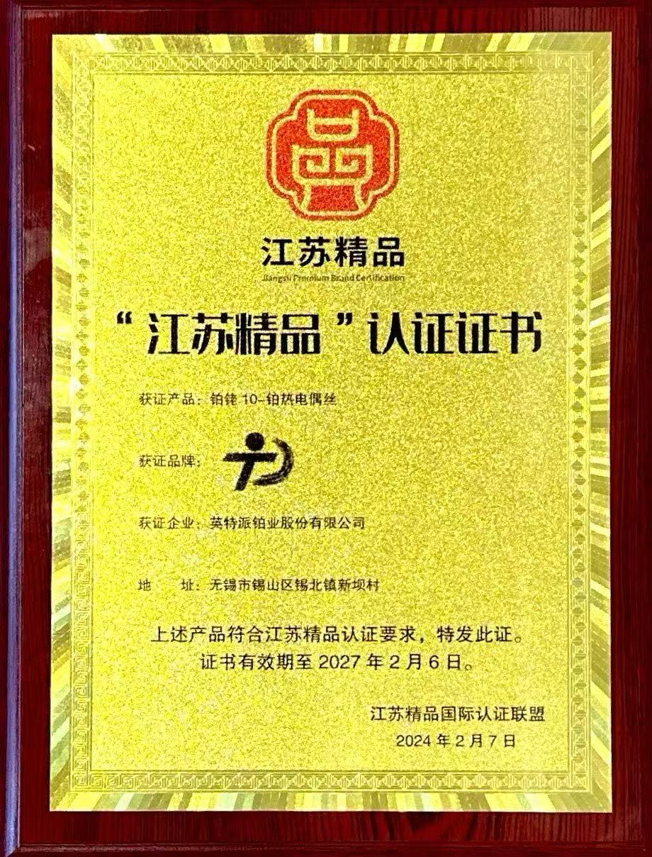 英特派鉑業以"精益求精"的工匠精神深耕貴金屬材料領域,從原料精選到工藝優化,從技術創新到品質把控,每一個環節都凝聚著專業團隊的智慧與匠心。公司持續強化創新驅動發展戰略,在貴金屬材料領域取得突破性進展,現已獲批國家級博士后科研工作站、建成江蘇省稀貴金屬材料工程技術研究中心。此次獲得認證的"鉑銠10—鉑熱電偶絲"產品,以其卓越的測溫精度和穩定性,廣泛應用于高端制造、精密測溫等領域。